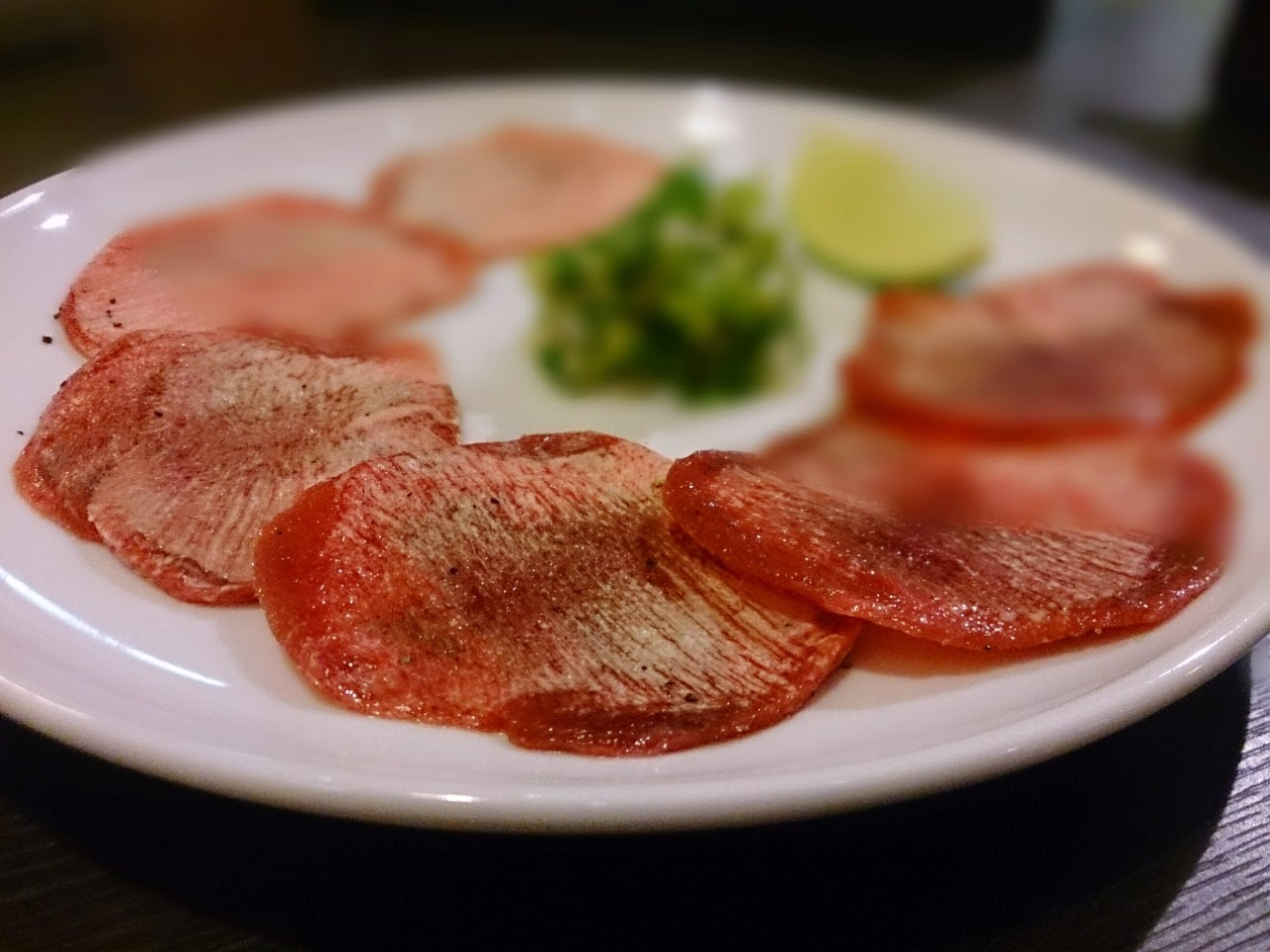 烤牛舌的秘訣:先將一面烤至半熟,翻面後再烤3秒即可。包上鹽蔥、擠點檸檬,享受牛舌獨特的Q彈口感吧!