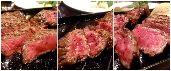 來張特寫,由左至右為沙朗、老饕、菲力。我們選擇5分熟,這粉紅色澤是不是很誘人~老饕不用說是三個人的最愛,菲力口感比較軟嫩,相比之下沙朗油花不多,稍嫌乾澀一點。