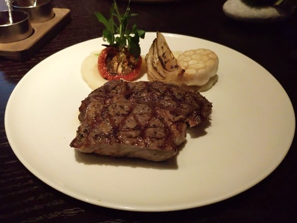 Just Grill主打的千元牛排,是午間套餐才有的880元爐烤牛排,選用美國Prime級肋眼部位做成。晚餐略貴些但還是很親切,基本款的肋眼、菲力牛排分別為1480元、1680元,不吃牛的也可以選擇龍蝦、鮮魚或羊排。3人以上還可以選擇綜合分享盤、甚至挑戰60 oz的戰斧牛排!Just Grill的主菜價錢都包含Buffet沙拉吧、水果和哈根達斯冰淇淋,另外還有單點的配菜如湯、薯條、洋蔥圈等。今天來慶生兼嚐鮮,和男友兩人都點了肋眼牛排,再單點一份龍蝦湯。