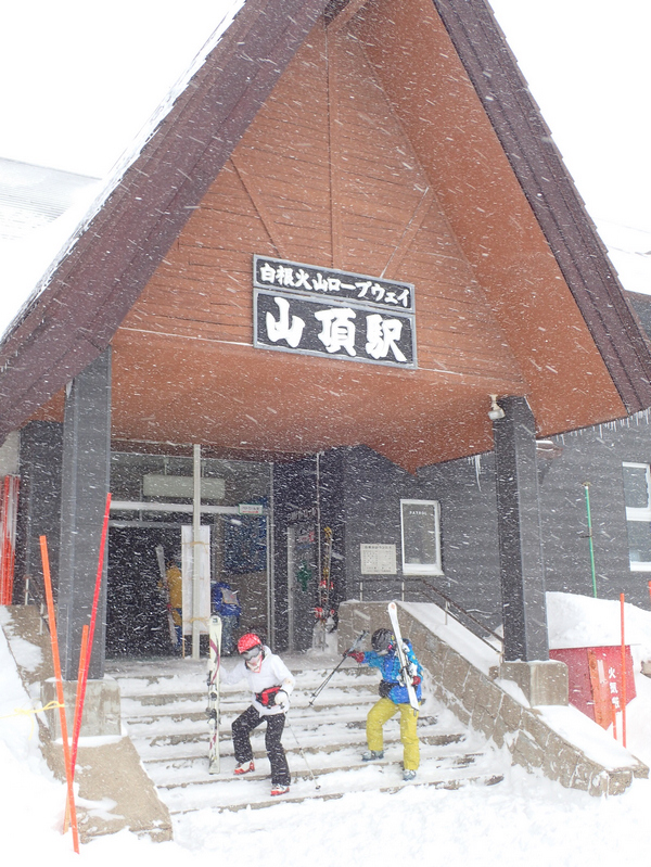 Δ草津國際滑雪場-白根火山口山頂站攻頂達成!和山腳截然不同的天氣,只有負9度,風雪超大的。往上的本白根第2纜車,往下的振子澤滑道都沒開,沿著清水澤滑道往下,剛開始一小段比較陡,後面就好滑多了。從山頂站可以一口氣毫不停止的滑下山喔!