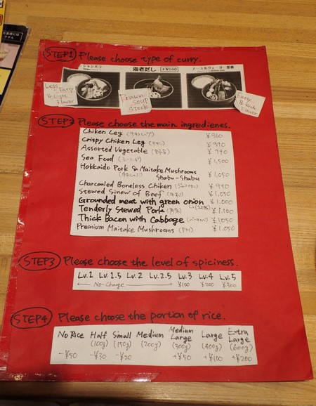 有英文菜單。北海道湯咖哩點餐蠻客製化的,可以依照個人喜好: