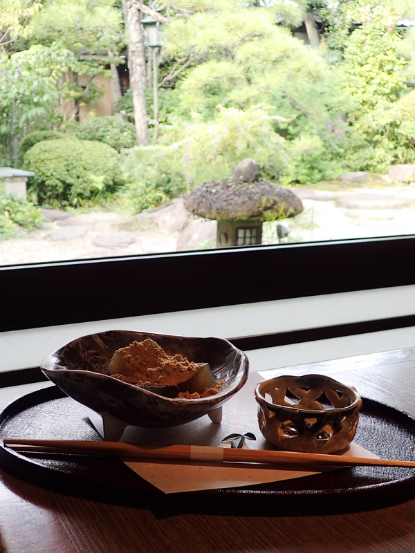 「手做蕨餅」(650日幣),一樣可加300元附飲料,每日由倉敷旅館廚房,使用高級的和三盆糖,手工製作。不是第一次吃蕨餅,但到今天才知道原來新鮮的蕨餅味道如此迷人!彈牙又Q軟,細緻的甜味在口裡慢慢化開,讓人回味無窮。