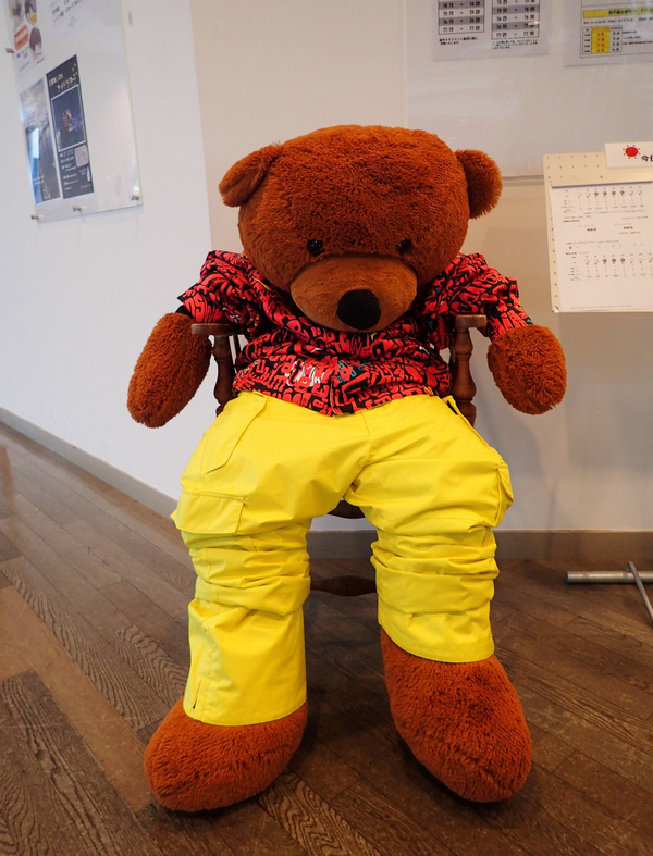 馬上發現「熊蹤」! 大廳內裝飾著動物玩偶,還有超大的熊布偶。原來鄰近有熱門景點Bear Mountain(熊牧場),是日本最大的棕熊放養地。跟一般動物園不一樣,熊是被放養在樹林內,接近野生的環境。遊客可以藉由遊園車或步道,近距離觀察熊的生活型態。也因此棕熊成為佐幌渡假飯店的招牌吉祥物。不過冬天熊都在冬眠,Bear Mountain只有在每年4-10月開放喔。