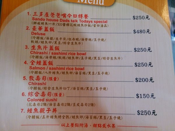 * 無服務費,無刷卡三多屋國際事業有限公司 (專賣生魚片,內用外帶皆可)
