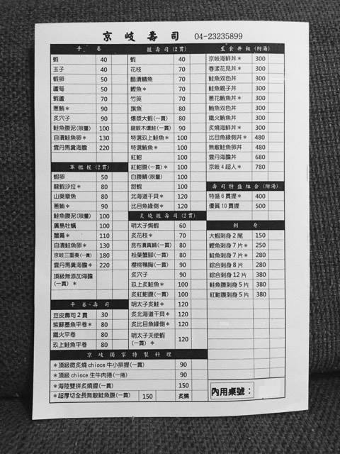 京岐壽司地址: 台中市健行路1011號,就在肉蛋土司附近(隔壁的隔壁的再隔壁。)