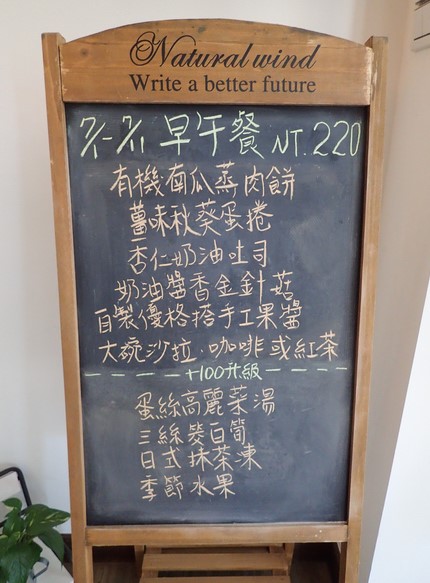 能讓客人一來再來的餐廳想必有兩把刷子。這裡的早午餐可沒有常見的漢堡薯條三明治,說起菜單設計,曾老闆自豪地說因為他非常了解食材特性,多是選擇當季食材,以簡單調味帶出食物原味。這是我在七月初到訪吃到的菜單,中西合璧,有當季的食材南瓜、秋葵入菜,有一點台灣味,又有一些西式料理元素。