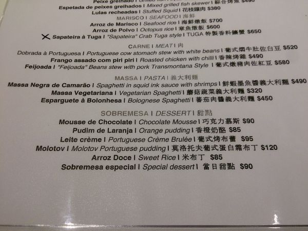 TUGA葡萄牙餐廳的招牌菜之一,焗烤奶油鱈魚 (NT$520) 加入馬鈴薯一起焗烤。醃鱈魚比新鮮鱈魚多了點嚼勁,適度的鹹位正好讓奶油醬汁不會太膩。