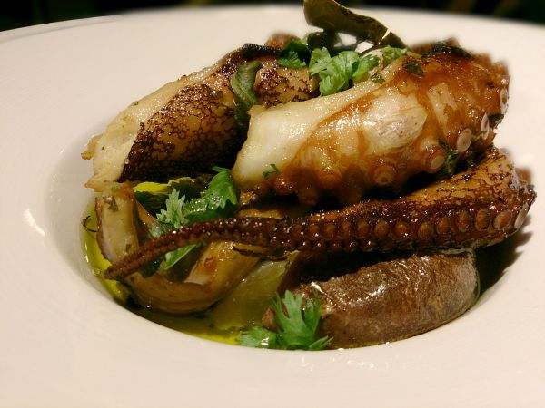 其實這是是二訪了,初訪時吃過開胃菜的章魚沙拉,章魚非常柔軟,但失去章魚特有的嚼勁,反而覺得有點無趣。這次點了章魚燉飯、烤章魚,一樣柔嫩的章魚加上了高湯調味或碳烤香氣,風味反而更加突出。三道章魚料理,我的排名是烤章魚>章魚燉飯>>>章魚沙拉,提供給大家參考。