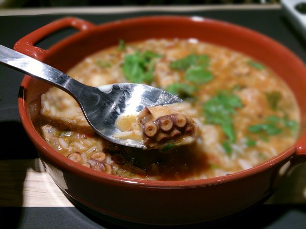 章魚燉飯 (NT$600) 葡萄牙式的燉飯有點像湯飯,章魚煮得非常軟爛入味,配上吸飽美味高湯的燉飯,非常好吃。