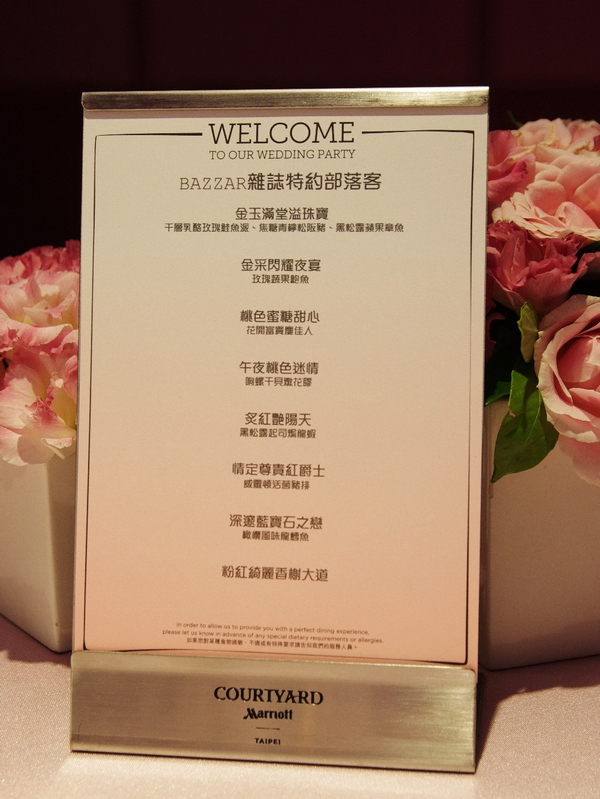 看到這,各位米其林評審,是不是已經在筆記本上打上許多勾勾了? 總算要進入重頭戲,婚宴試菜囉,先來看看「鑽漾璀璨婚宴專案」的菜單: