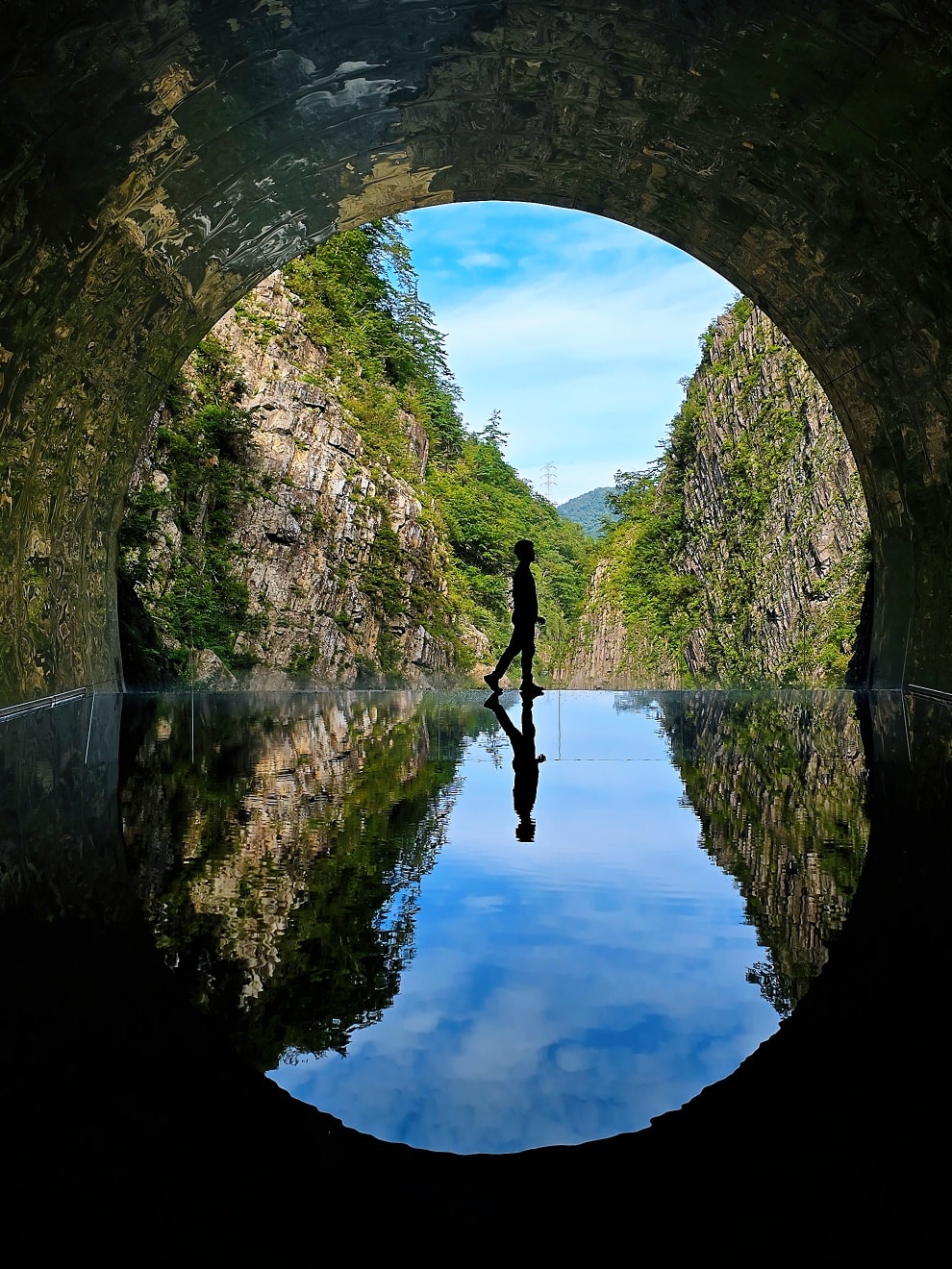 早上退房後,我們去了越後湯澤最熱門的景點清津峽,絕美的鏡池是拍照打卡熱點。
